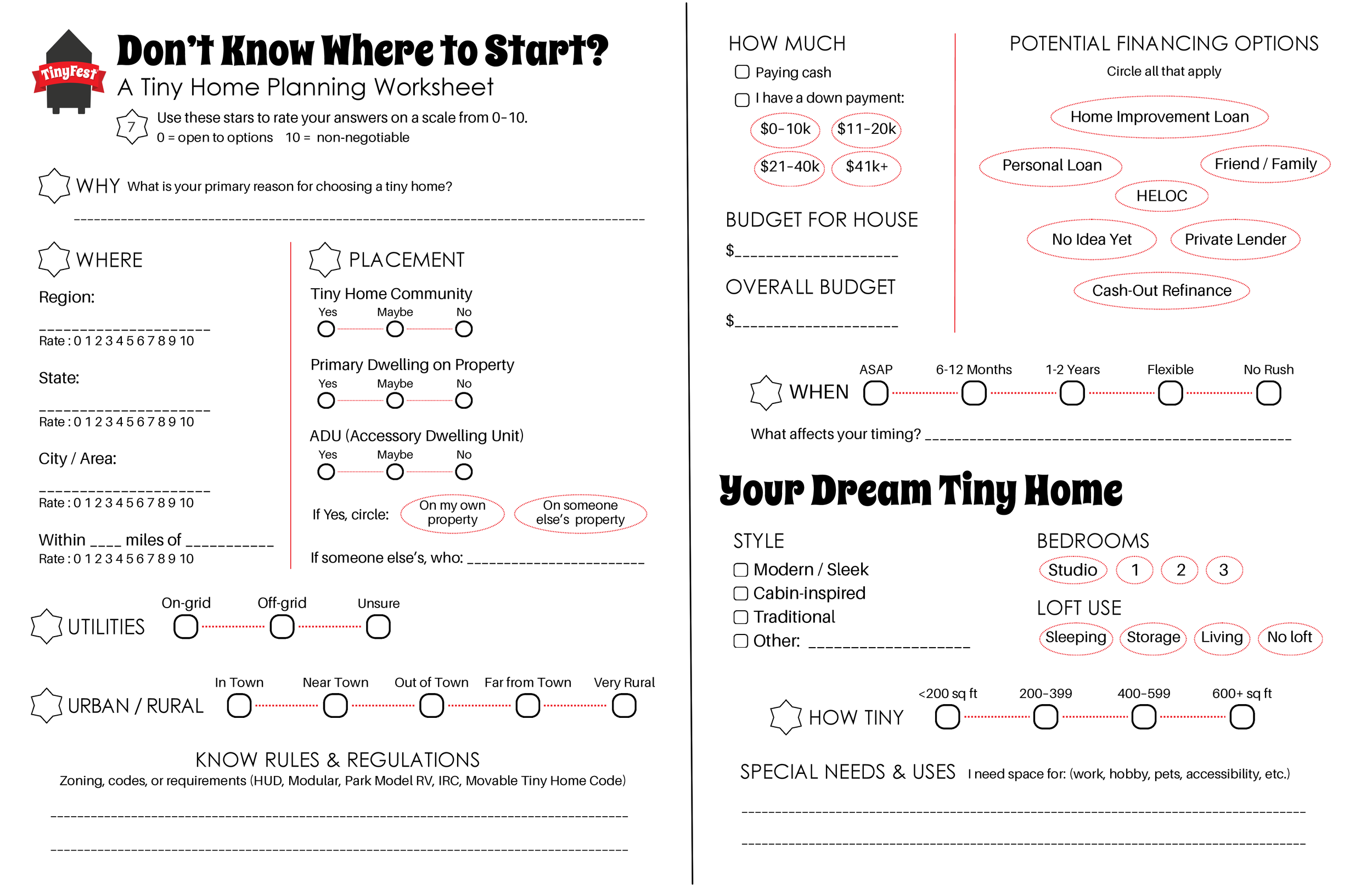 And, be sure to bring it to TinyFest. Sharing your starting place with builders, consultants and new friends will help you guide you into productive conversations and jumpstart your journey to tiny living.
