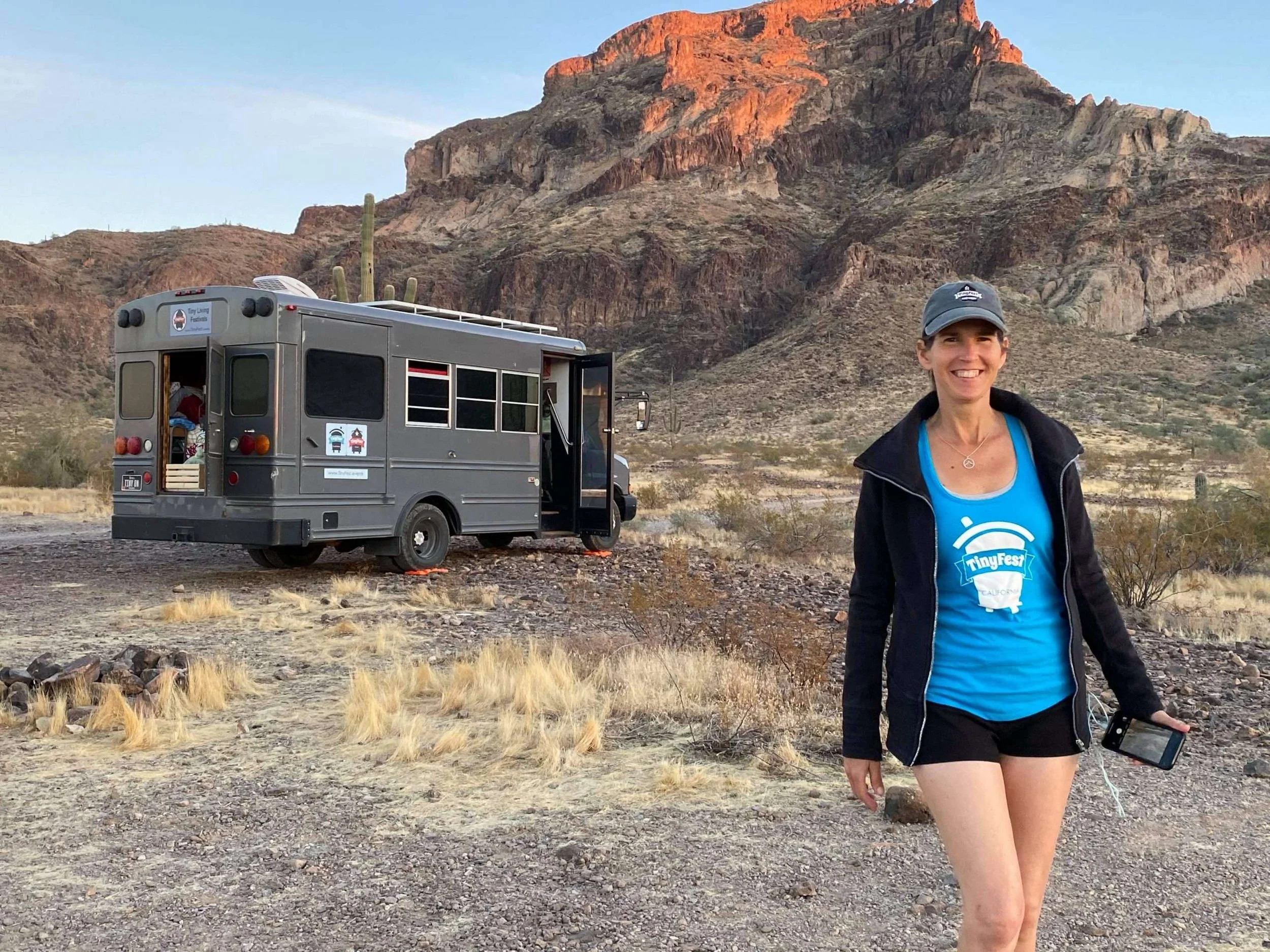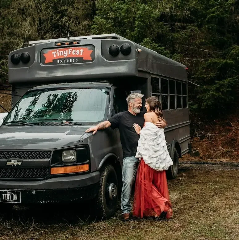 Renee now lives in her short bus, The TinyFest Express, with her husband Zev.